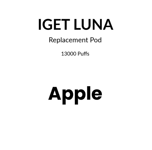 Iget Luna Pod$19.90 NZD$19.90 NZD $19.90 NZDCurrent price $19.90 NZD| /No reviewsApple IGET LUNA KP13000 Pod offers the crisp, refreshing taste of sweet apples for clean, fruity vaping. Specification: Puffs: 13000 Puffs E-liqu...