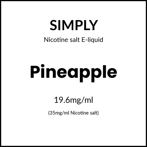 Simply Salts$22.95 NZD$22.95 NZD $22.95 NZDCurrent price $22.95 NZD| /No reviewsA simple juicy pineapple, now available in salts! Specs: 30ml childproof PET bottle VG/PG Ratio: 50/50 Ingredients: VG, PG, natural and artificial...