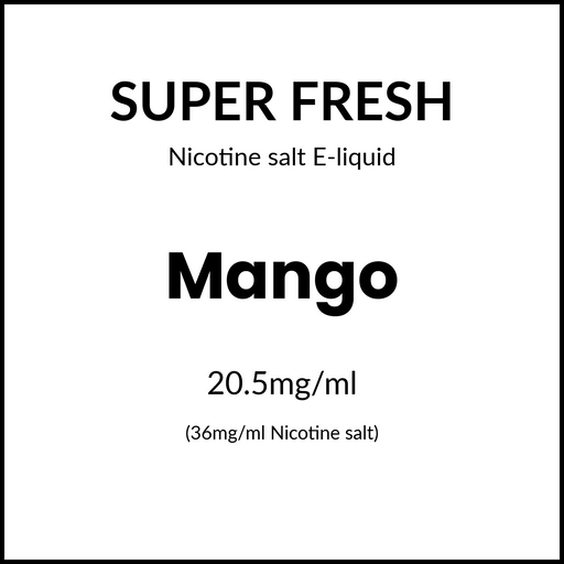 Super Fresh Salts$20.00 NZD$20.00 NZD $20.00 NZDCurrent price $20.00 NZD| /No reviewsFlavour Profile: Juicy, Ripe Mango Sweet and Tropical Perfection Smooth, Velvety Finish