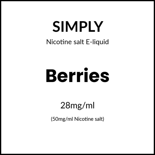 Simply Salts$22.95 NZD$22.95 NZD $22.95 NZDCurrent price $22.95 NZD| /No reviewsSome simple berries, now available in salts! Specs: 30ml childproof PET bottle VG/PG Ratio: 50/50 Ingredients: VG, PG, natural and artificial fla...