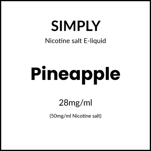 Simply Salts$22.95 NZD$22.95 NZD $22.95 NZDCurrent price $22.95 NZD| /No reviewsA simple juicy pineapple, now available in salts! Specs: 30ml childproof PET bottle VG/PG Ratio: 50/50 Ingredients: VG, PG, natural and artificial...
