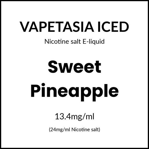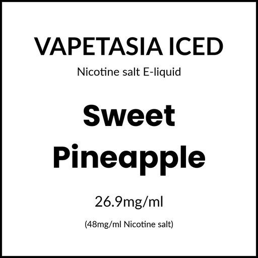 Vapetasia Salts$24.95 NZD$24.95 NZD $24.95 NZDCurrent price $24.95 NZD| /No reviewsPreviously known as Iced white gummy Get ready for a cool breeze on your tropical pineapple expedition. This Iced Sweet Pineapple is hard to put down!